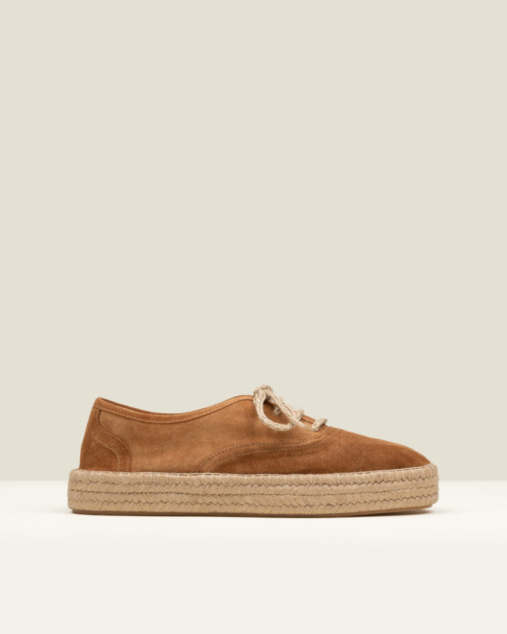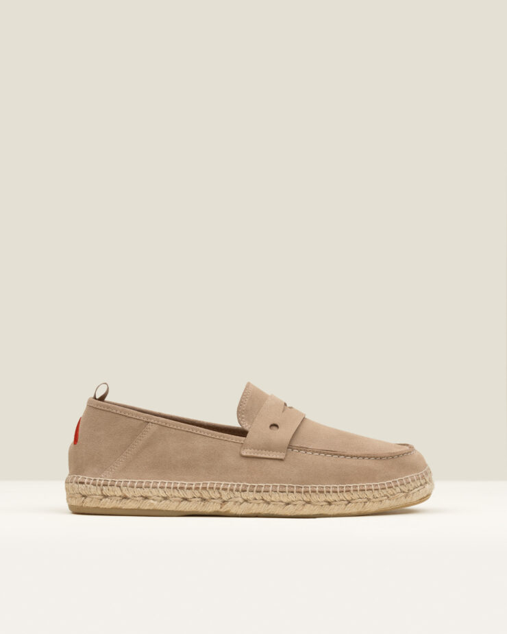 Armand is a flat espadrille in suede with a clean, balanced design. A subtle metal buckle at the vamp defines the model with a refined and understated gesture.