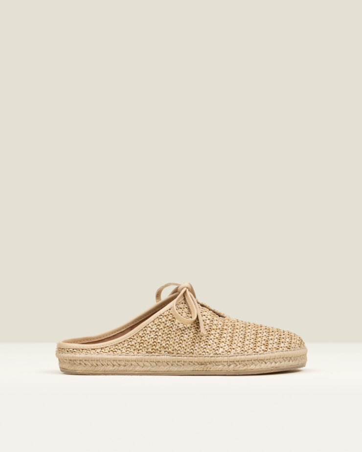 As this espadrille features a natural jute sole, it is recommended to avoid excessive contact with water and not to submerge it. If the shoes become damp, allow them to dry naturally, away from direct sunlight or heat sources.