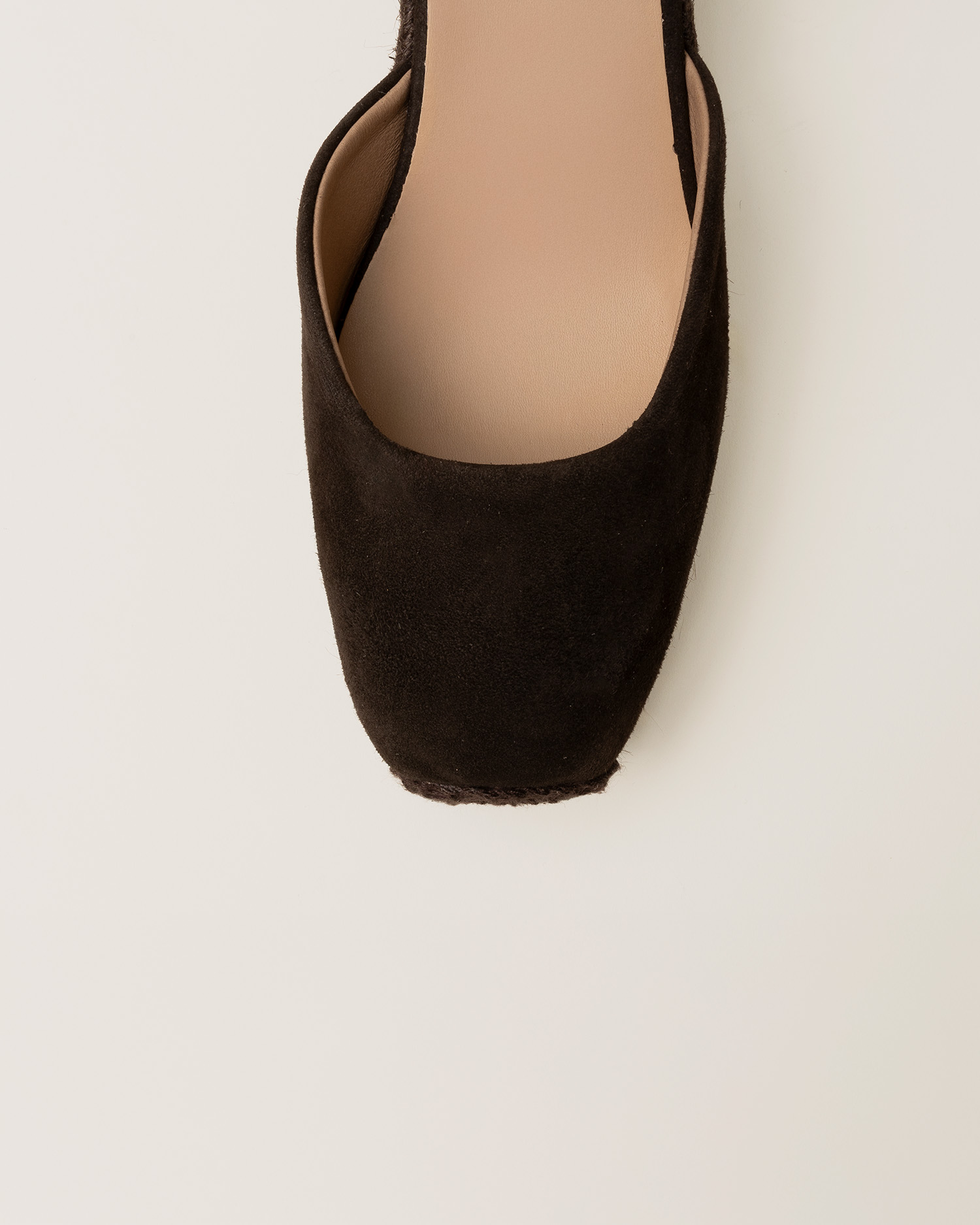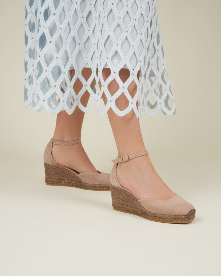 Hester es una alpargata de cuña media de diseño cerrado, con cierre de hebilla y una silueta limpia y bien proporcionada. Su punta cuadrada define el modelo y aporta un carácter contemporáneo y equilibrado.