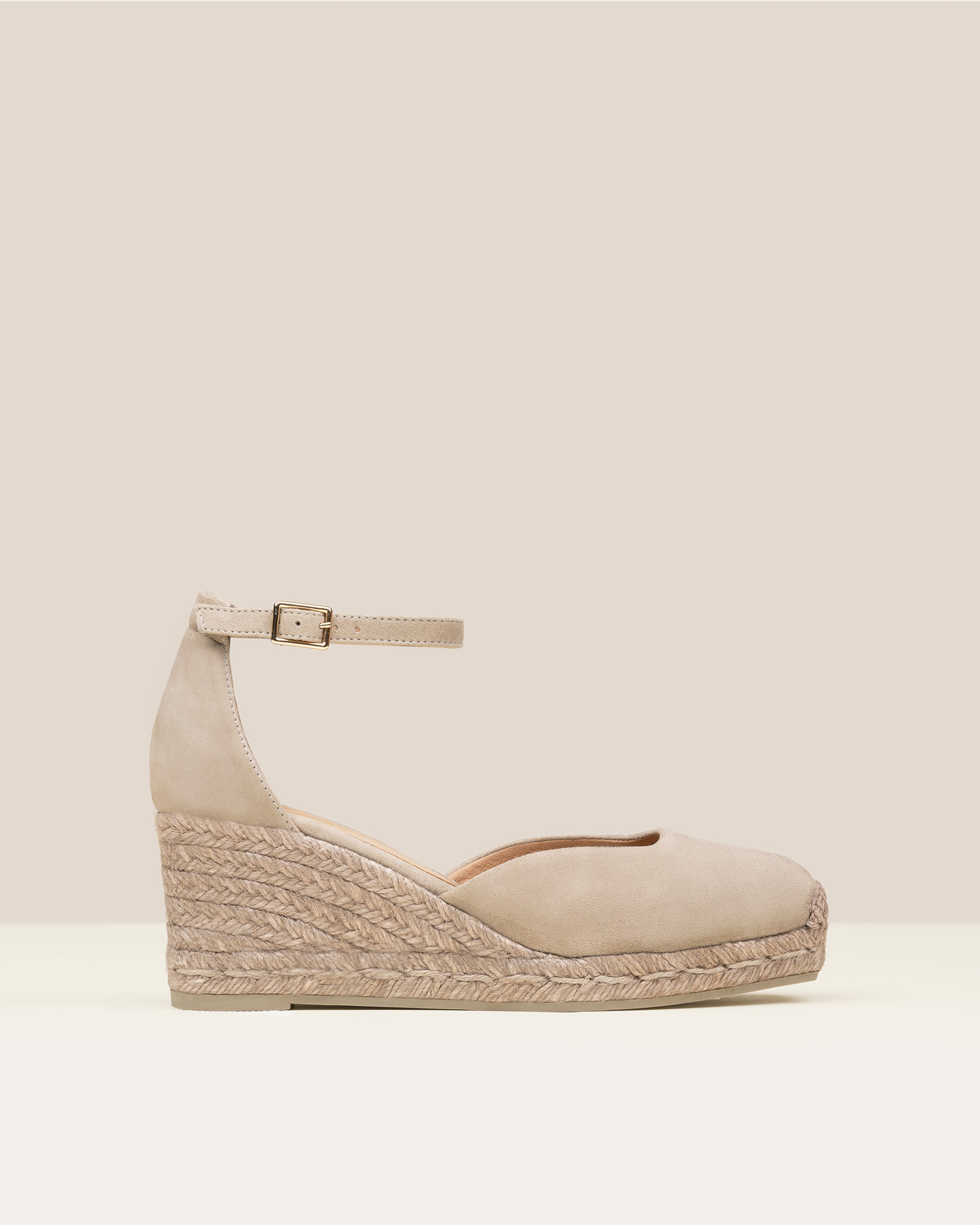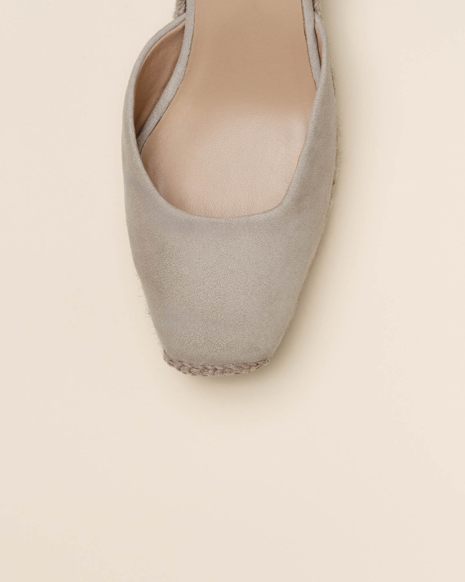 Hester es una alpargata de cuña media de diseño cerrado, con cierre de hebilla y una silueta limpia y bien proporcionada. Su punta cuadrada define el modelo y aporta un carácter contemporáneo y equilibrado.