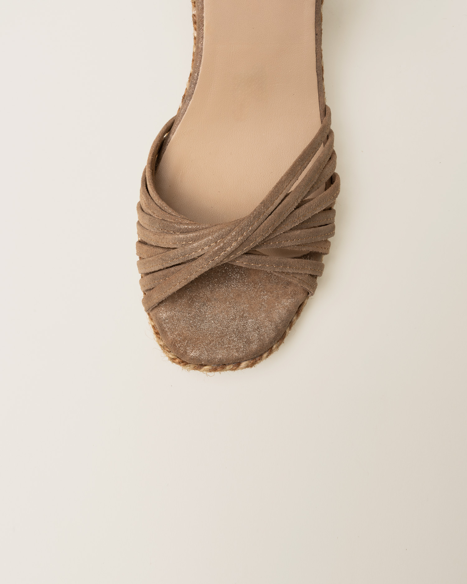 Su silueta estiliza la figura con naturalidad, convirtiéndola en una alpargata de verano versátil que acompaña el día a día y celebraciones donde la modernidad forma parte del diseño.