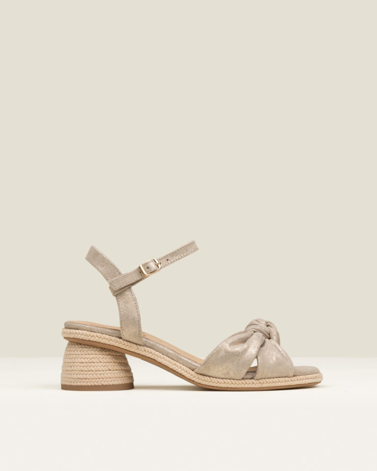 La combinación de brillo y detalle artesanal aporta equilibrio, convirtiéndola en una alpargata de verano versátil pensada para celebraciones y momentos especiales donde la feminidad se expresa con sutileza.