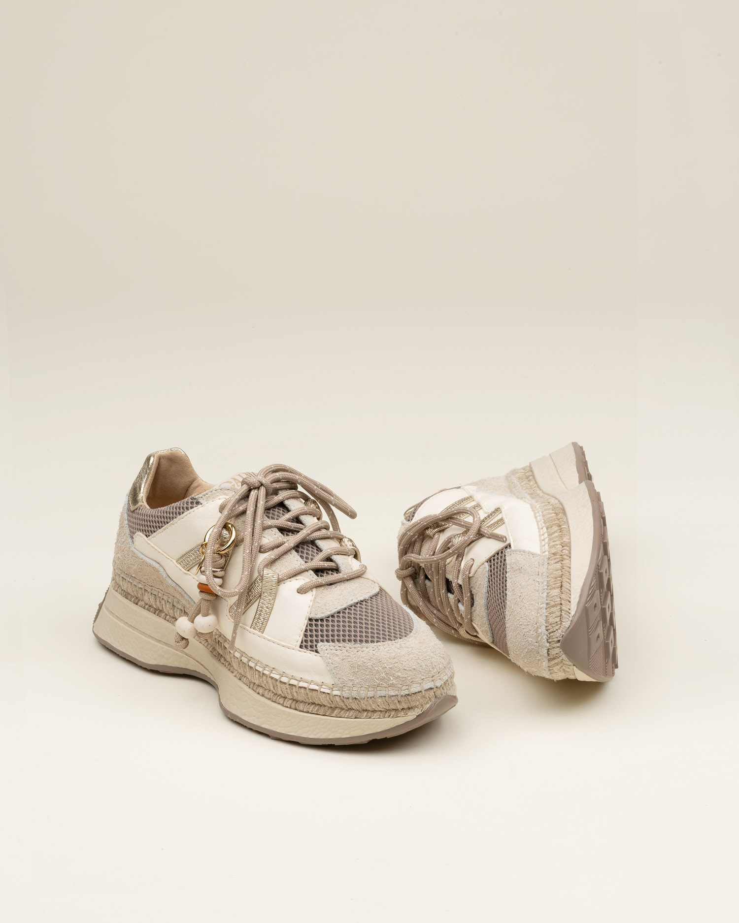 Las sneakers Banet de Gaimo reinterpretan el estilo deportivo con un toque femenino y contemporáneo. Confeccionadas en piel y rejilla de algodón, combinan una suela maxi de goma con piso de yute 100% ecológico. Su forro y plantilla acolchada de piel garantizan confort en cada paso. Diseñadas y fabricadas a mano en Arnedo, La Rioja, estas zapatillas de mujer destacan por su versatilidad y aire contemporáneo, perfectas para elevar tus looks casuales.